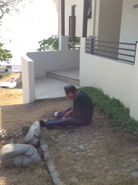 From the morning, putting concrete on the roof of dive shop. We finished at 1:00 on 10 April.