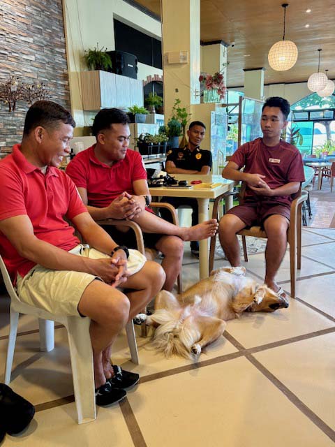 定例週末ミーティングにはベージュも参加。そして寝る。