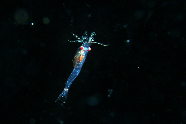 こんな感じで、浮遊生物が集まってきますが、ピントがあわない。浮遊生物ではないワレカラまで漂ってきていました。