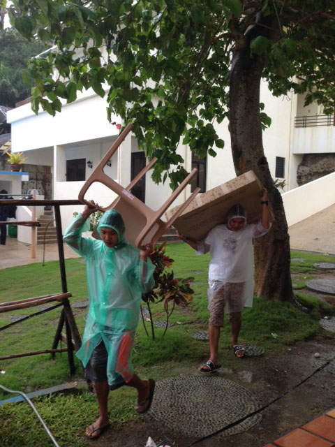 昨日に引き続き大荒れのアニラオ。ダキエダを基地にしているボートは海にも下ろせない状況。火曜日くらいには落ち着いてくれそうな天気図です。