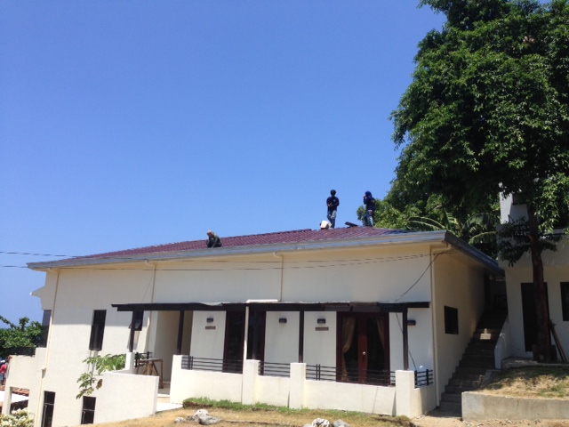From the morning, putting concrete on the roof of dive shop. We finished at 1:00 on 10 April.