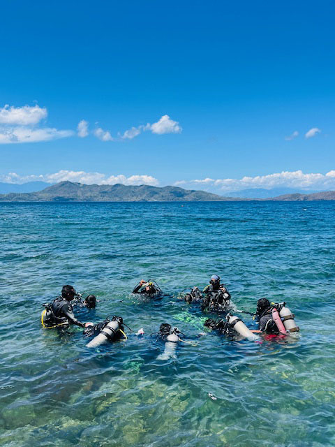 ボートが出たあとのハウスリーフでは、7人のオープンウォーターダイバートレーニング。