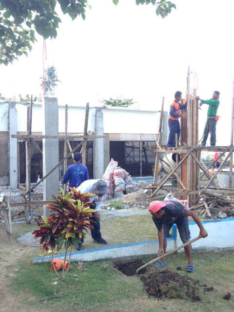 ホーリーウィークの4連休が終わって、拡張ダイニングエリアの工事再開しました。前と同じ親方をつかっているのですが、10人ぐらいのチームが無駄がなくてよいみたいです。