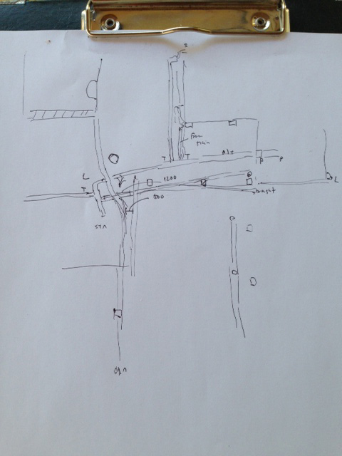 - 将来そうならないようにパイプの配管スケッチ。汚いですが、下書きです。