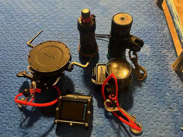 夜は、浮遊系ナイトダイブ。ライト2本と、カラーで暗いところでも見やすいダイコン、とGoProで挑みます。古い方のGoProには、クローズアップレンズもつけてみて、撮れ具合を確認したいのですが、暗くて中層に浮き続けていなければならないのと、良い被写体はゲストの皆さんに優先して撮影していただきたいので、今日は検証機会はないかも。