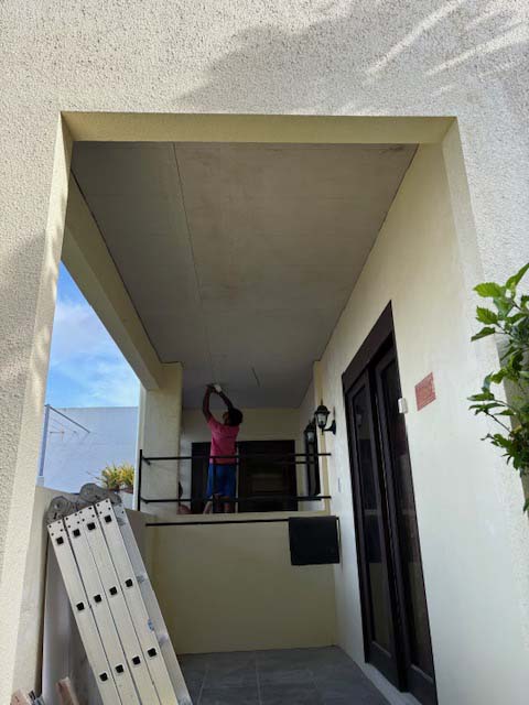 リゾートでは現在、先日まで行っていた雨漏り修理の天井張替え作業が最終工程。あとはペンキ塗りです。