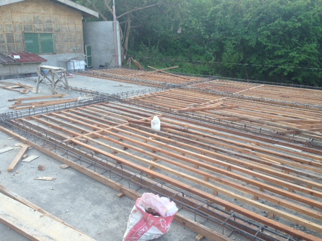 - 旧ダイニング上部の仮枠の基礎ほぼ終了。ベニアの打ち付け待ち。