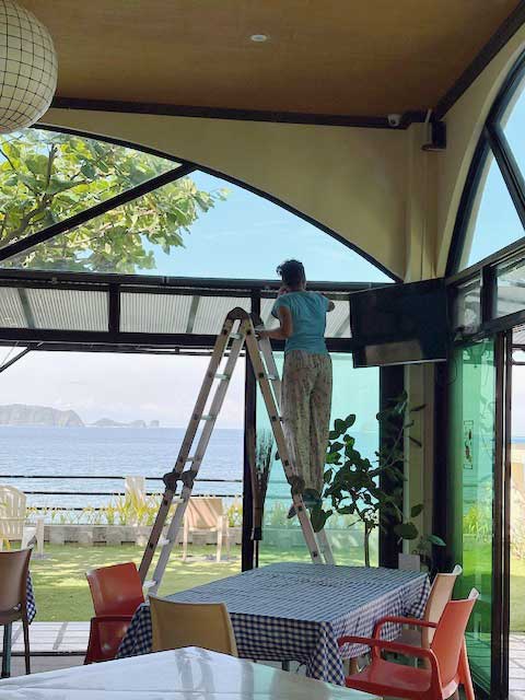 ダイビングスタッフは、女子だけど脚立に登って窓拭きなどもしてくれていました。