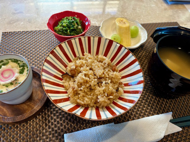 今日は台湾おこわ。松茸が香るっぽい茶碗蒸しにはお餅が入っていて、ちょっとボリューム感があって、餅好きな私には嬉しい一品。アサリのスープもいいお出汁が出ていました。元気20%増しです。
