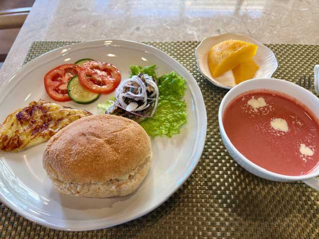 見た目から食欲をそそる朝ごはん、トレーニング前のエネルギー補給にぴったりでした。ジェラルディンさん、グッジョブです。 冷菜担当だったマイエンがいなくなってしまいましたが、めげることなく仕事をしてくれています。