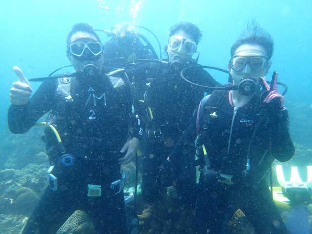 ボートが出発したあとは、リゾート前のハウスリーフでアドバンスとオープンウォーターダイバートレーニング。