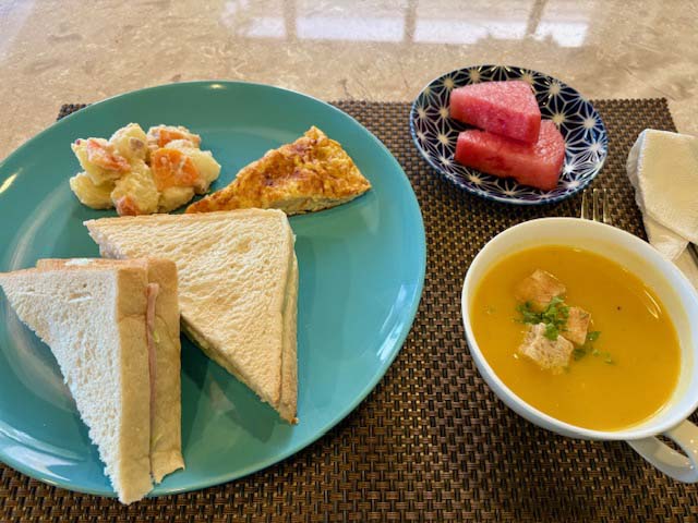 朝食はハムレタスサンド、ランチは牛スジビーフカレー。キッチンスタッフは病欠もせず、休みなしで連日よく頑張ってくれています。