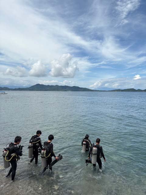 週末を迎えたアニラオです。昨日に引き続き、雨季としては最高のコンディション。透視度良好、水温28.5度。
