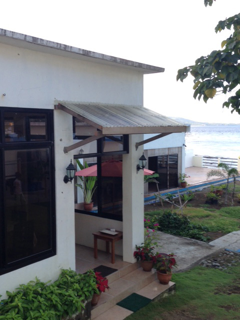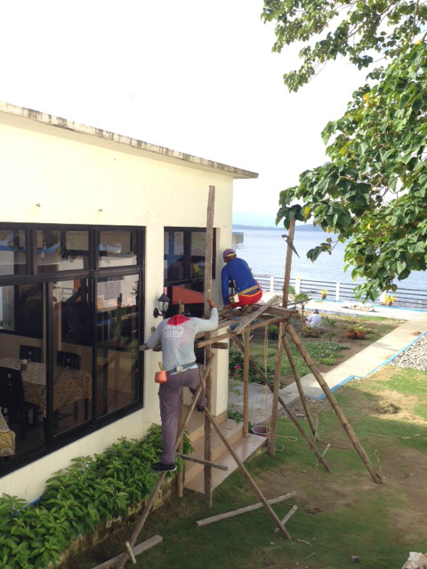 ダイニングの入り口に雨しのぎの仮屋根設置。旧ダイニングを改築するまでの仮です。
