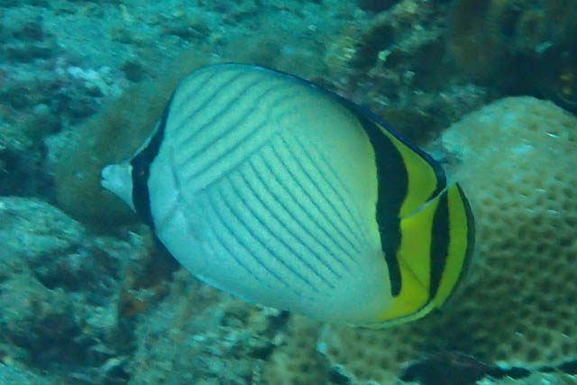 チョウチョウウオの生息分布図から言えば、あと20種以上会えてもおかしくないです。 そういうチョウチョウウオの中で、なかなか会えないのは、テンツキ・チョウチョウ、ツーアイコーラルフィッシュ、タキゲンロクダイ、・・・ 辺りですね。 見かけたら、場所をメモっておいてください。 チョウチョウウオも場所に居つくので、一度見られれば、その場所で再び会える可能性は大変高いです。 テンツキは、浅い汚い海(ちょっと表現が悪いですが、今まで出会ったのは、マブールの人工物を沈めてあるハウスリーフと、コモドのリンチャ島の桟橋近くの砂泥の2か所だけです)、タキゲンロクは少し深めの岩場、ツーアイは岩場のスリバチカイメンに付くことが多いです。