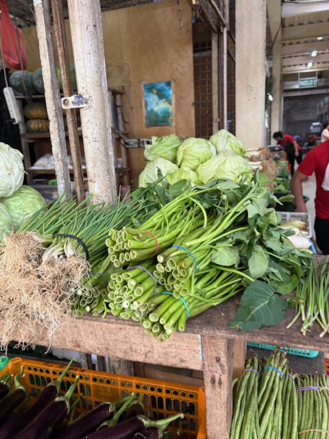 市場に行くとたいてい売っている空芯菜(フィリピンでの呼び名はカンコン)。野菜の中では安い価格帯の、庶民の味方です。フィリピンでの代表料理は、お酢と醤油で調理したアドボンカンコン。