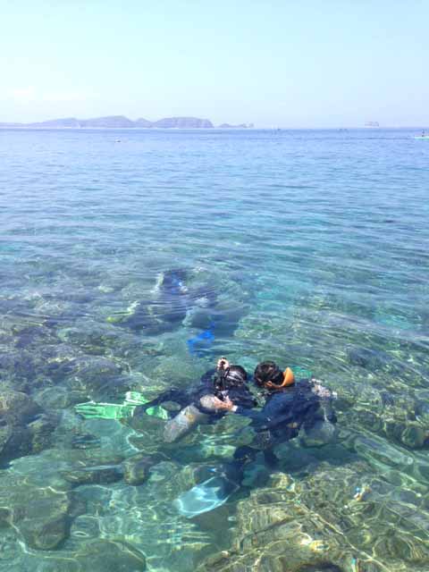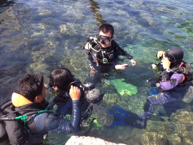 ファンダイバーのボートが出た後は、家族4人で体験ダイビング。