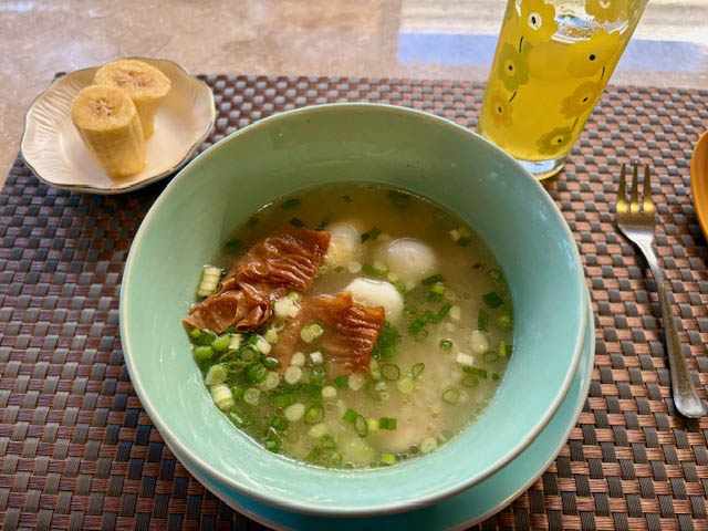 朝食はお腹に優しいアロスカルド(鶏粥)。これはこれで美味しいのですが、腸活マンの私は密かにオートミールも投入して食物繊維マシマシにしておきました。