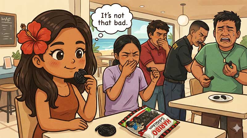 リコリスは漢字圏では甘草。甘草から作られているグミで、薄い味付けにすれば、中華料理で出てくる黒いあのゼリーと原料は一緒です。