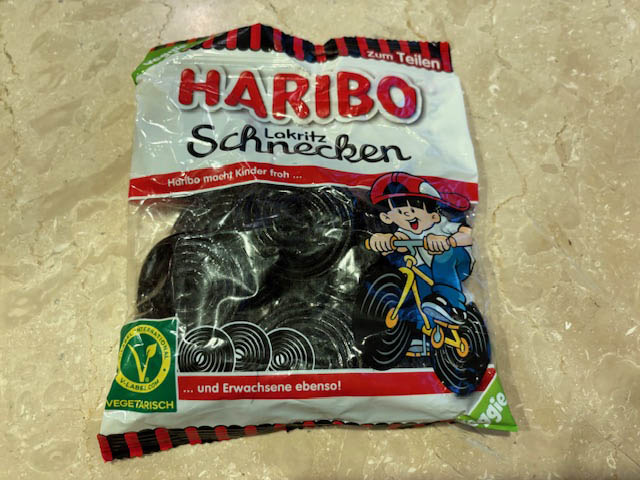 そんな世界一まずいグミはドイツの老舗グミメーカーのハリボーの「ラクリッツ・シュネッケン」(Lakritz Schnecken)味。