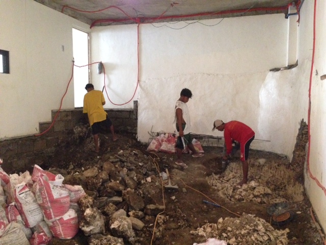 台風22号で波ざぶ 2015.10.022015.10.04 台風22号の影響で、風の強いアニラオです。午前はなんとかフロントからボートが出ましたが、昼ごろ波が高くて、午後はジープでシークレットベイに移動にしました。 皆さん潜られている間も工事は続きます。 旧スタッフキッチンは、洗濯場に。