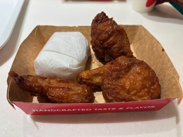 BonChon のチキン、かなり辛いことは先週1つマービンから手羽をもらって立証済み。唐辛子アレルギーなのに大丈夫か?と3つ並んだチキンを見て思いましたが、腸活的に油を減らすので衣を全部食べなければオーケーだろうということで、半分ほど衣を残すと特にアレルギー反応は出ませんでした。てか、唐辛子アレルギー治ったのかな?