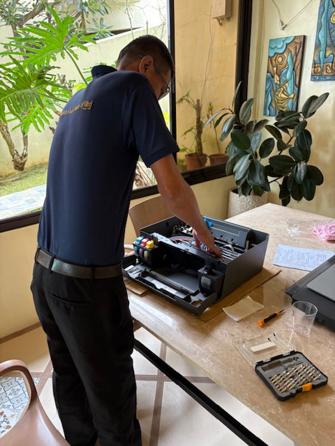 とりあえず、家のプリンターをアニラオに持ってきて、この子は修理に出しますかね?