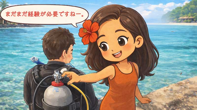 こういうちょいとした失敗をしながら、悔しさをバネに「忘れない」ダイブマスターに育っていってもらえばよいです。