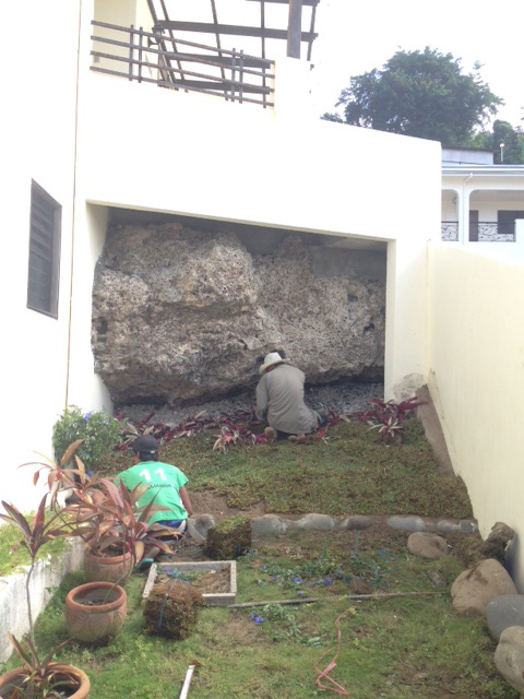 リゾート緑化最終日。観賞用ヤシをプラスチックポットから瓶に移して。