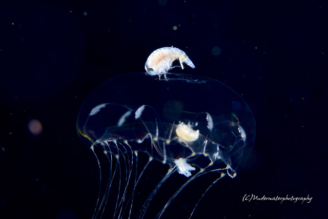 骨なしの軟体動物の彼らとは正反対の甲殻類では、カニのメガロパ幼生や、目が飛び出したエビ。クラゲに乗るウミノミなども忘れてはいけない海の仲間たちです。写真提供、Underwaterphotographyさん。ありがとうございます(^o^)