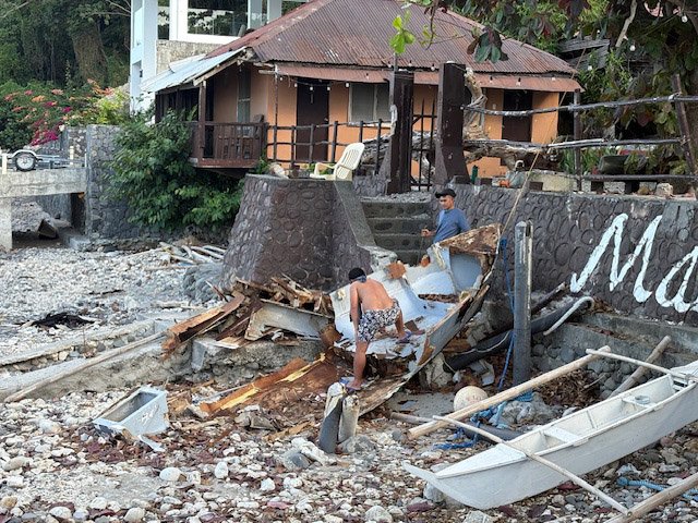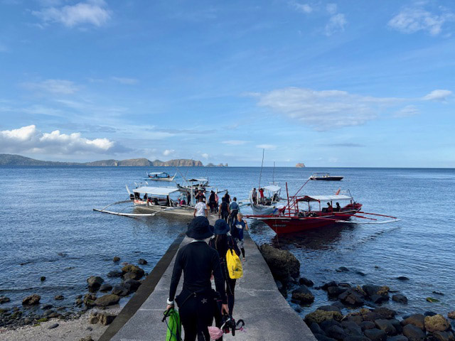 ボートは水温25度の海へ。日本からのショップさんもダイビング続行中です。