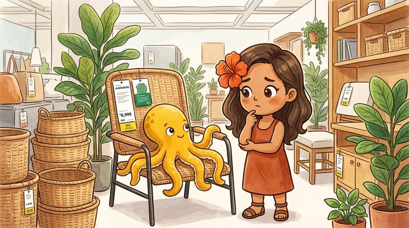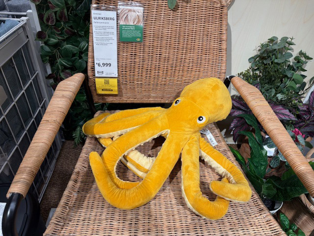 IKEA店内にはサメや海洋生物のグッズが売られていることがあるのですが、今日初めて見つけたのはタコのクッション。