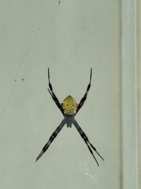 その後、私と奥さんは所用のためマニラに移動。そろそろ出ようかと思ってガードハウスの脇を見ると、なかなか立派なクモがいました。