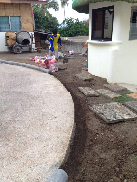 - 余ったコンクリでガードハウスの出口にコンクリ打ちました。