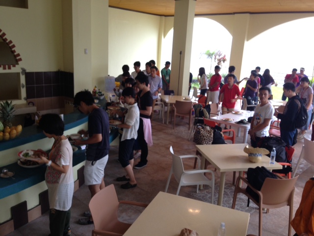 昼到着の40人の皆さんが使えるように、新ダイニング準備。なんとか間に合って、使ってもらえました。40人、古い方のダイニングには入りきらないです。