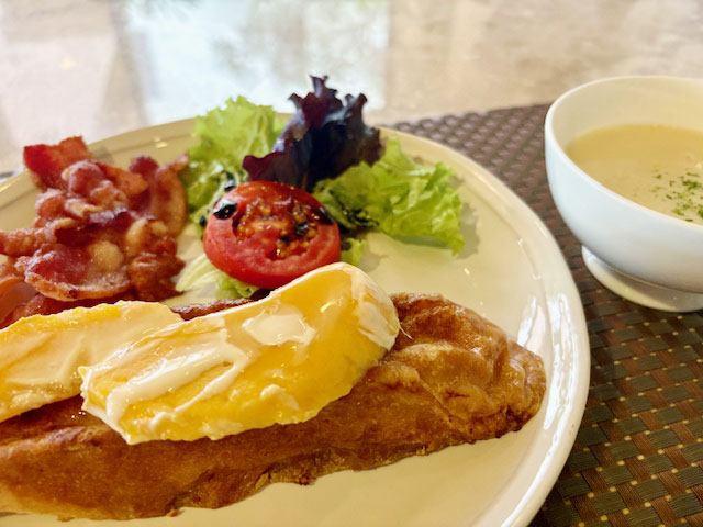 本日も日本からゲストがいらしていますので、朝からしっかり食べてダイビングに行きたいところ。朝食は、みんな大好きマンゴーのフレンチトーストでした。