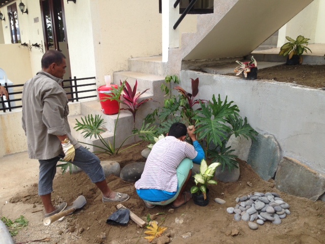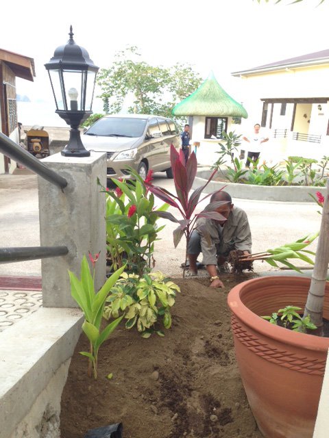 買ってきておいてまだ植えてなかった植木を、今日から植え始めました。ロータリー回りには芝(のようなカラバオグラスってやつ)も入れる予定。