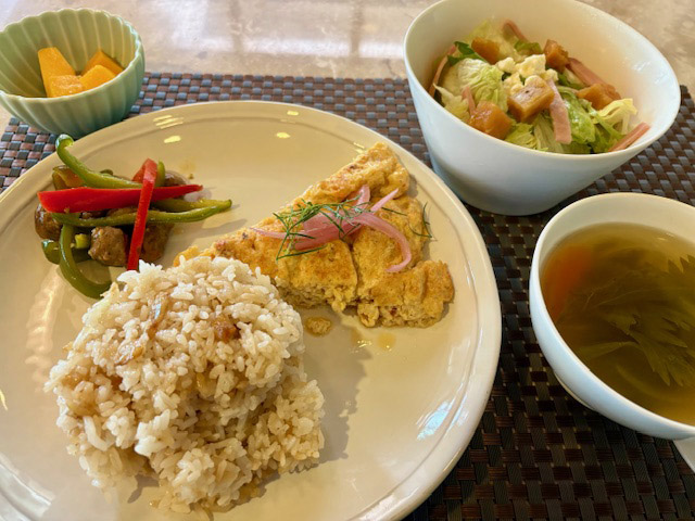 まずは朝ごはんから。本日はこんな感じでした。野菜多めが嬉しいです。