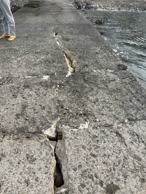 桟橋の横の穴も、12月の一番潮が引くタイミングで直す予定です。今日はセメントが間に合わなくて、桟橋の一部が欠けた状態です。歩く時は足を引っ掛けないよう、お気をつけください。