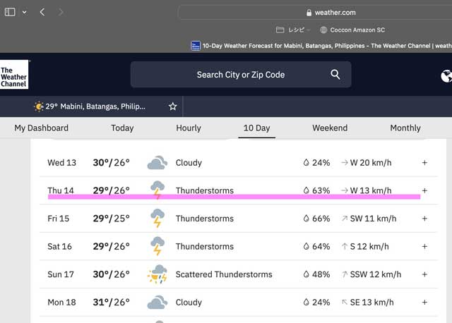 今週末にご予約しているマニラダイバーさんから、「木曜日から週末にかけて雷雨の予報だけど大丈夫でしょうか?」とのご質問をいただいていました。
