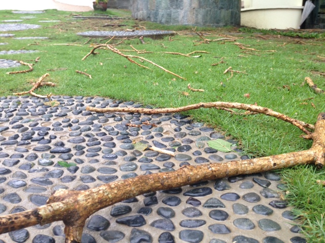 リゾート内あちこち飛んできた葉っぱでいっぱいでしたが、午前中で片付きました。