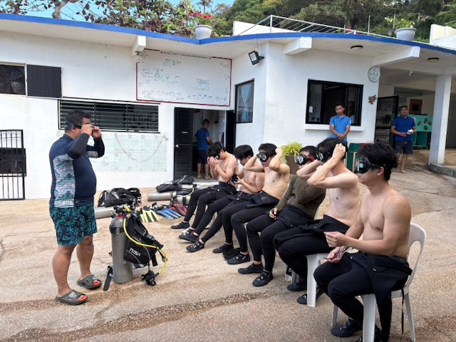 オープンウォーターのトレーニングは、先々週に積み残しがあった方。今週はマンツーマンでじっくりと。自信もついてきたようで、これなら問題なく卒業できそうな手応えです。