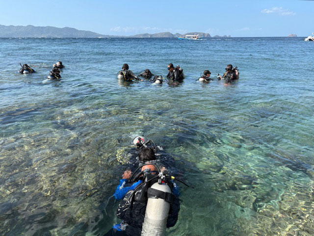ボートが出たあとのハウスリーフでは、今日はオープンウォーターダイバーコースだけでなく、体験ダイビングも多数実施しました。