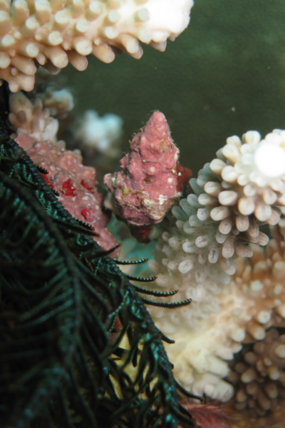 死サンゴから生えているクサビライシもありました。前出の子といい、死サンゴを探すとである確率が高いみたいです。