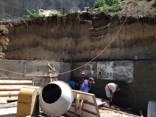 - 擁壁第一段終了。上の方はスタンダードの2階の床のスラブを打ってから続けます。