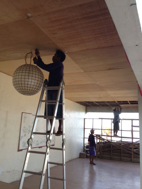 - 照明と天井剥がし。