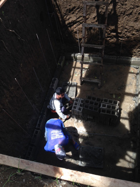 - スタンダード棟の浄化槽、掘ってから時間が空きましたが、ブロック積み始めました。