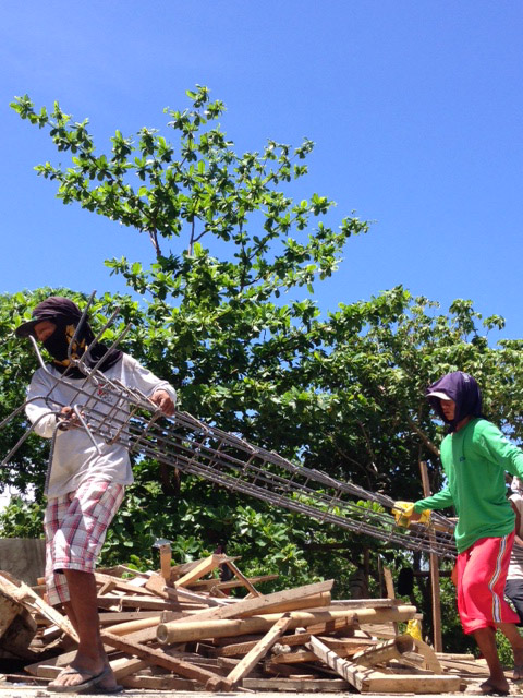 今日の工事。スタンダード棟、柱の鉄筋立て終わりました。