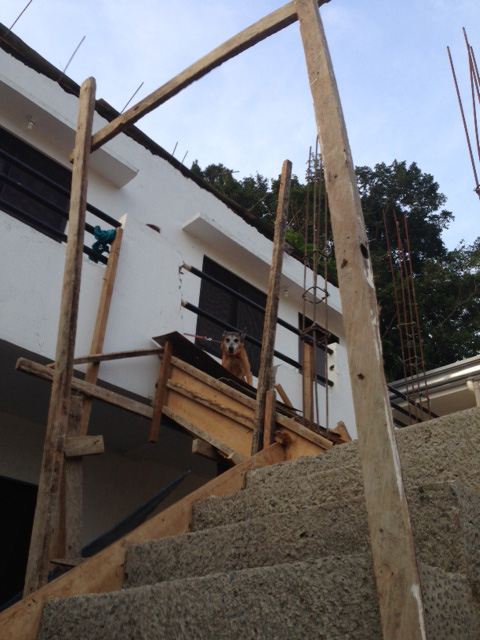 - 完成していない階段から降りて来たがるアンジュ様。