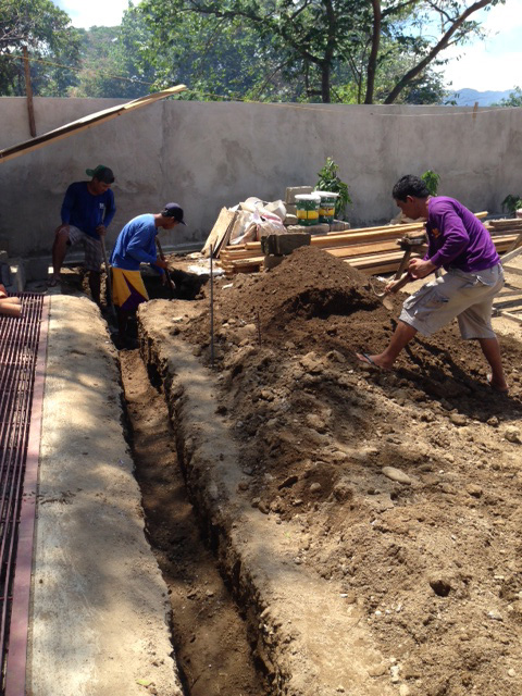 - 新築スタンダード棟の下水パイプを浄化槽に接続するための溝掘り。